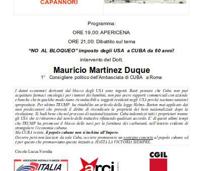 “NO AL BLOQUEO” imposto dagli USA a CUBA da 60 anni!intervento del Dott. Mauricio Martinez Duque1° Consigliere politico dell’Ambasciata di CUBA a Roma https://italiacuba.it/2019/09/29/no-al-bloqueo-usa-contro-cuba/
