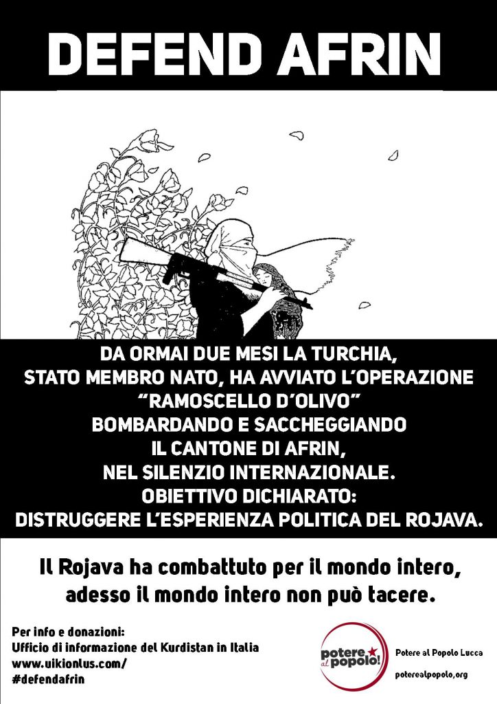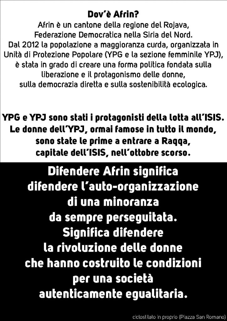 Oggi in Piazza Santa Maria alle 15,45 Volantinaggio per Afrin