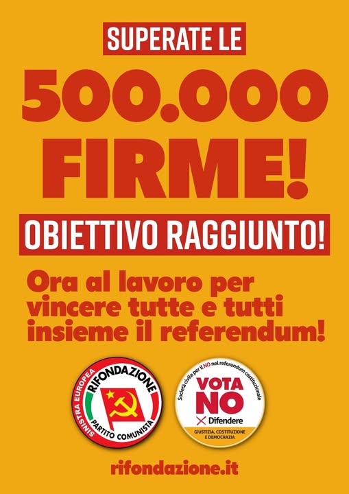 Grande soddisfazione: il primo obiettivo è raggiunto ora, di slancio, vinciamo tutti insieme il referendum. 500.000 cittadine e cittadine hanno firmato per difendere la Costituzione. Abbiamo espresso, dal giorno dopo dell’approvazione del testo blindato della deforma costituzionale, la necessità di raccogliere le firme perché il referendum confermativo fosse massimamente conosciuto e un attacco tanto forte all’autonomia e all’indipendenza della Magistratura non passasse sotto silenzio.Leggi l’articolo completo cliccando qui