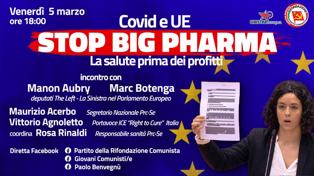 Stop Big Pharma di prclucca · 4 Marzo 2021 Link all’Evento sulle Pagine Facebook del Partito della RFifondazione Comunista-Giovani Comunisti-Paolo Benvegnu’